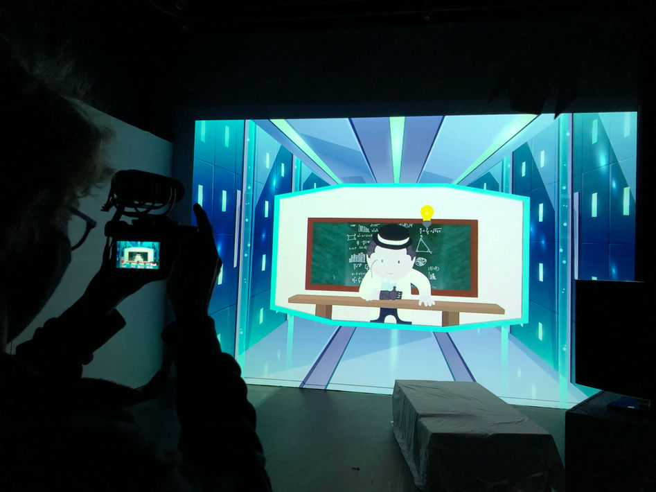 NL: Exploring Screens project ging voornamelijk vooral om projecties. Een verhaal vertellen met schermen en beelden. Ook dat je beelden kon programmeren in de ruimte. De naam zegt het zelf al, je moest experimenteren met schermen. Dat deden we ook in de lessen. Zo hebben we geleerd om met allerlei voorwerpen te projecteren.